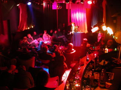 “Willkommen, willkommen”. Die 7 Weltwunder begrüßen Autorinnen und ZuhörerInnen zu der Frauenlesung in der Sau und machen zumindest die eine Seite mit der anderen etwas bekannter.